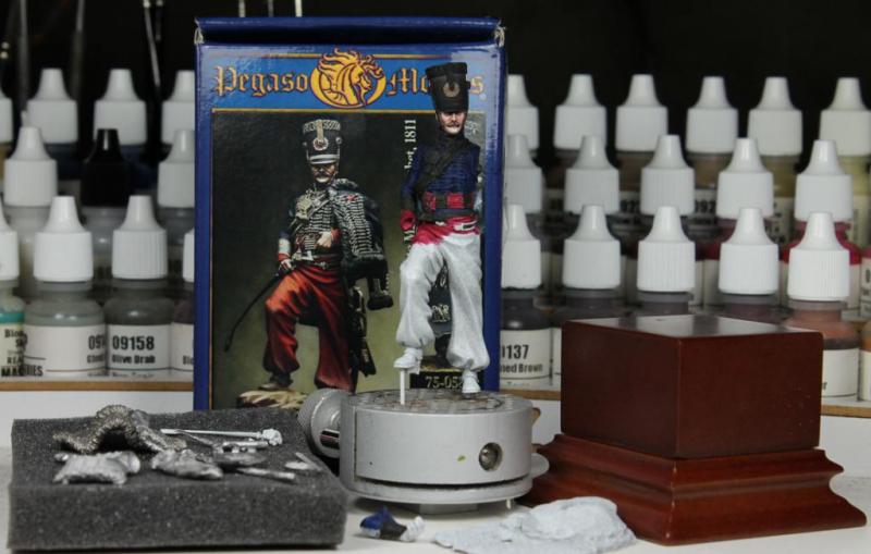 I wanted to say a big thank you to the folks at imodeler! The prizes from the November contest arrived just a few days ago. They were a beautiful 75mm figure from Pegaso of a Captain ADC to Marshal Suchet 1811 and a wood figure base from Andrea Miniatures. As you can see I wasted no time and have already begun to assemble and paint the figure. I'll be putting together a full step by step walkthrough of the project over in the figure section of this site, so keep an eye out for it.