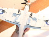 I resin cast the spinner as well as the propeller blades, and scratch built the radiators, the canopy was also modified from the rounded Mk 5 canopy to the classic Mk 9 canopy, which I vacuum formed and did the canopy framing with lead strip. The rudder was also changed as well as the retractable tail wheel. I also scratch built the parachute pack on the horizontal stabiliser. The wheel hubs on the undercarriage were also scratch built. The RAAF roundels and Code letters were all hand painted.