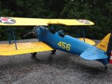 Here's my just finished Stearman PT-17, a 1/48 scale Revell kit I built 'out of the box'. It is the smallest model I've built. the kit goes together real well, maybe it should be part of Revell's "Pro-Modeller' series. Maybe if they just added a PE sprue of details it could be, but it seems pretty detailed anyway. I used rattle cans of Testors blue and yellow, and painted the tail instead of trying to do the decals for the dark blue/red/white part as they just seemed too big and where things like that meet the edges there always seems to be more decal that surface. The rigging is not included in the kit but dimensions for it are. Although those dimensions all seemed a bi large, they did provide a good reference and starting point. I used plastic whiskers from a small hand held whisk broom for the rigging lines.