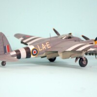 The kit is a hallmark of Tamiya’s modeler-friendly production design, and assembles easily with a minimum of filler needed if one takes their time. The kit provides both underwing bombs and rockets, as well as a detailed rear bomb bay with two bombs. Decals are provided for an all-black NF II of 157 Squadron, a Coastal Command Mosquito FB VI from 333 Squadron of the Banff Wing, and an FB VI from 487 Squadron.