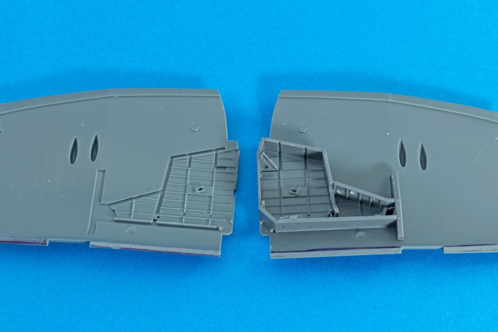 The landing gear pit was well detailed out of the box. It was built with 6 plastic pieces glued onto the upper wing halve. As a precaution measure, a sanding stick was run on the edges to ensure a good fit.