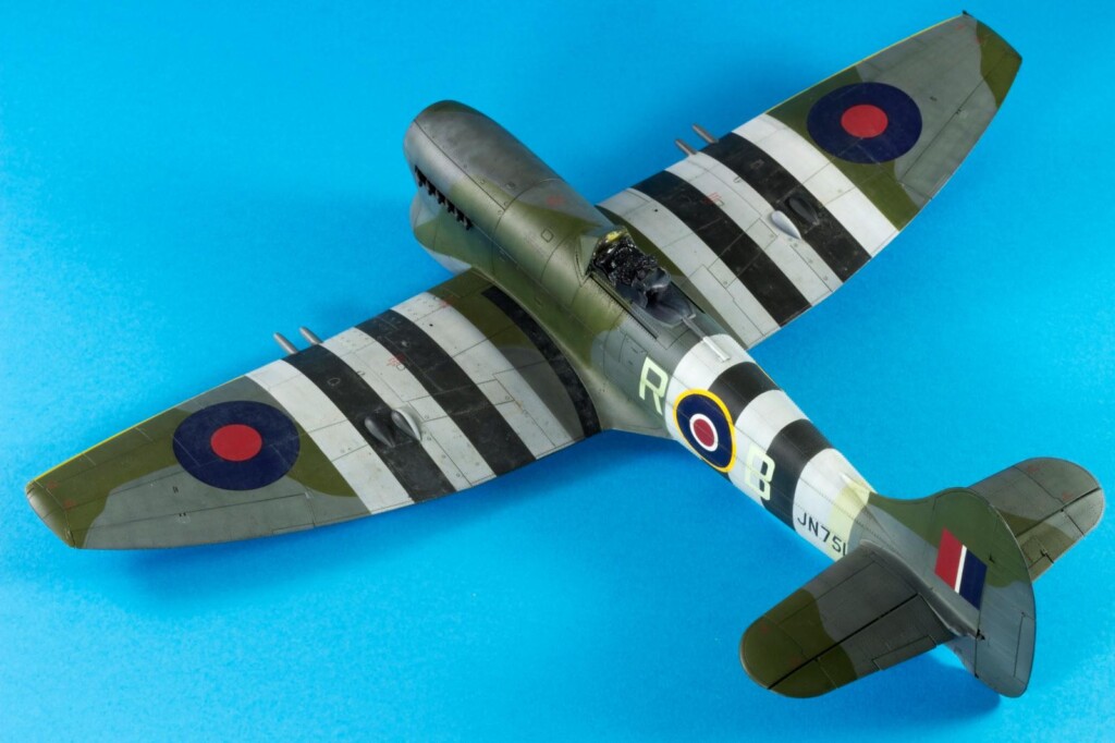 The colour scheme planned for this build consisted of airframe JN751, which was the mount of Wg Cdr Ronald P. Beamont DSO, DFC & bar, CO of No. 150 Wing, Newchurch, Great Britain, circa June 1944. This needed the application of the D-Day identification bands, both on the wings and fuselage.