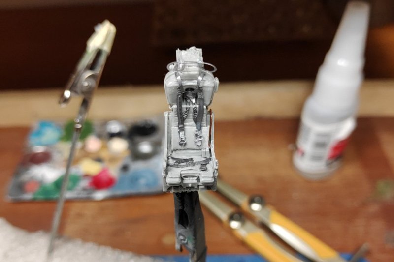 I managed to start the Crusader, not much, just sanding off al raised panel lines, building the connection to have the canopy in open position and glueing the small parts to the cockpit and ejector seat.